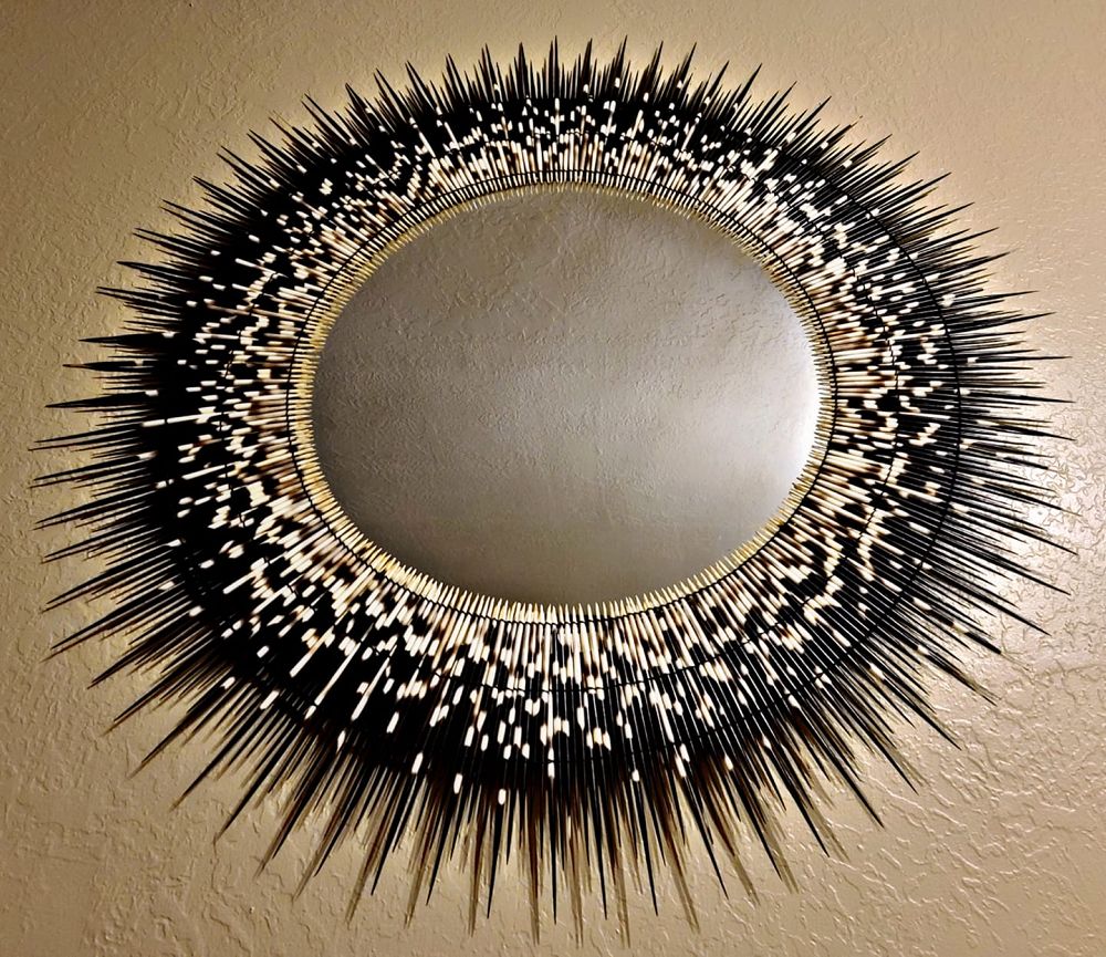 Introducing our Mirror With Porcupine Quills, now available in an extra large size! This stunning mirror combines style and functionality, making it the perfect addition to any room in your home. With its unique design featuring porcupine quills, this mirror is sure to be a conversation starter.